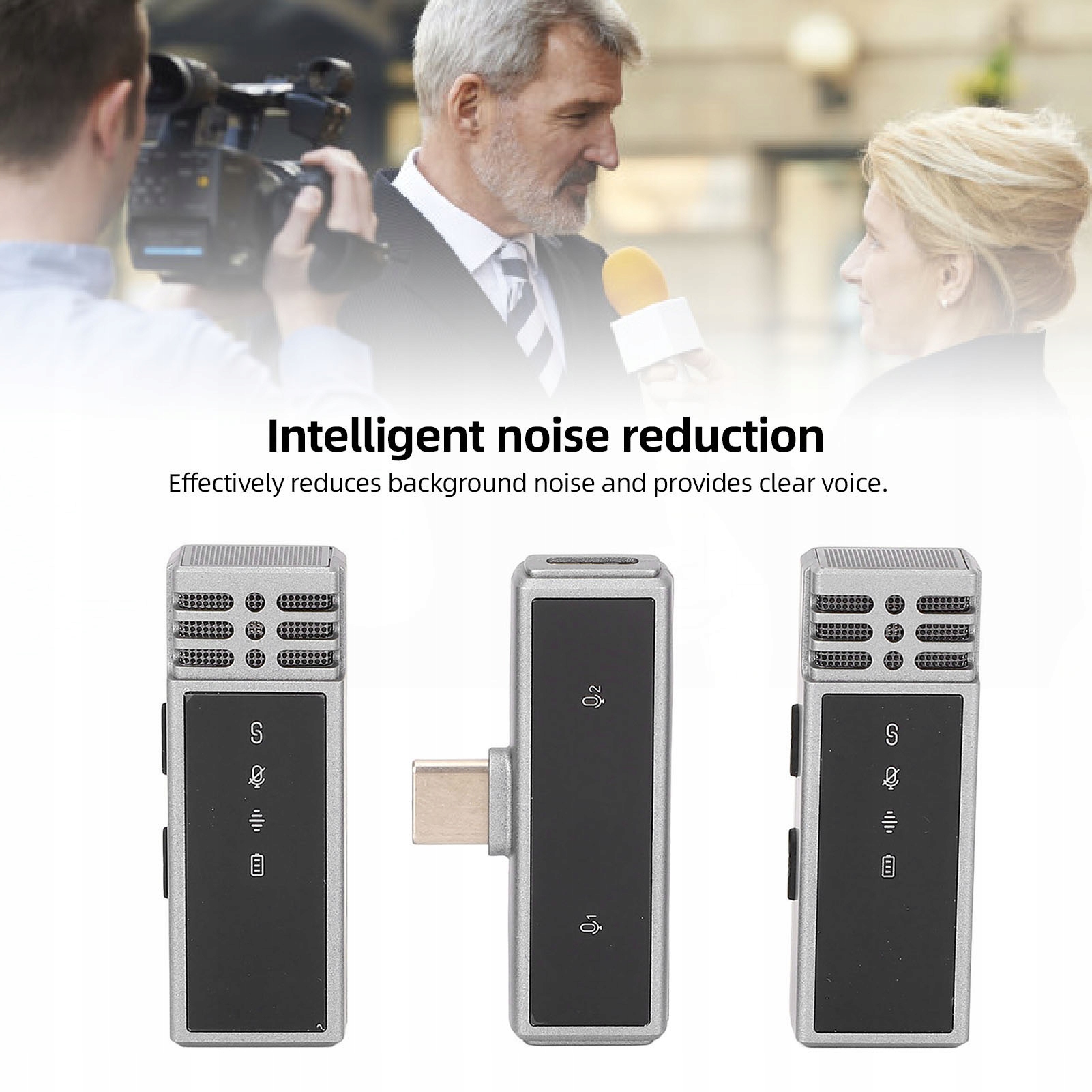 1. Інтелектуальне шумопоглинання: містить вдосконалену технологію шумозаглушення, яка ефективно мінімізує фоновий шум для чіткого захоплення голосу, що робить його ідеальним вибором для мобільних прямих трансляцій та інтерв’ю.