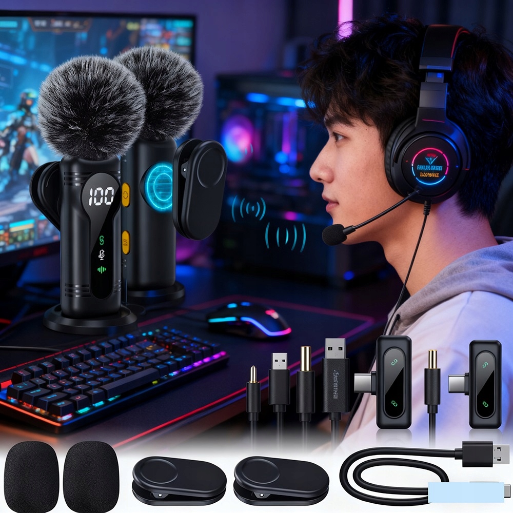 🎤🎤🎤 Ідеальний бездротовий мікрофон для YouTube: універсальний пристрій, оснащений усіма необхідними аксесуарами, сумісний із більшістю сучасних пристроїв, таких як iPhone, телефони Android, планшети, ноутбуки та настільні комп’ютери.