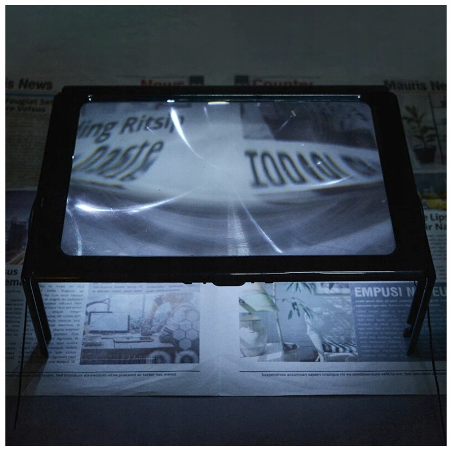 Універсальна лупа формату А4 з 4 світлодіодами стане в нагоді в багатьох справах. Корисно для читання, а також для інших видів діяльності, що вимагають високої точності. Це допомагає під час роботи з меншими механічними та електронними компонентами.