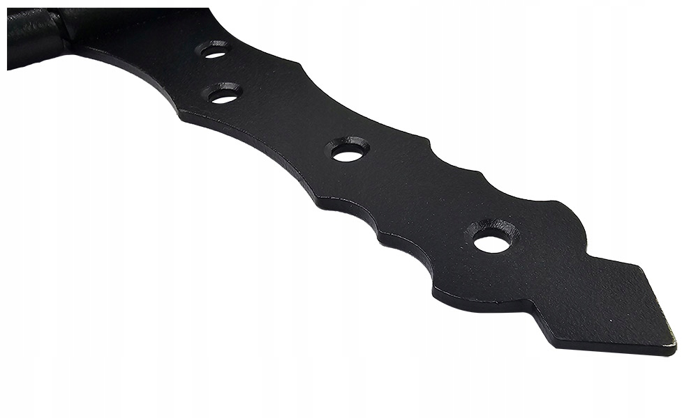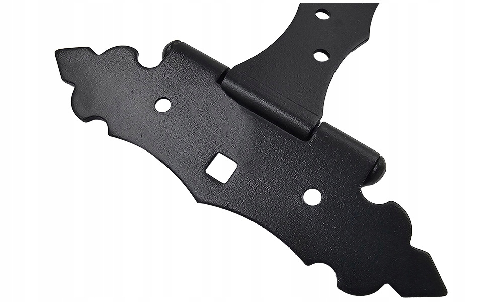 Декоративна петля від Domax поєднує в собі, перш за все, міцність і естетичність, що робить її ідеальним елементом для монтажу воріт, хвірток або навіть дверей чи ролет. Він виготовлений зі сталі та покритий порошковою фарбою, що робить його стійким до різних погодних умов та ультрафіолетового випромінювання, а чорний колір ідеально вписується в багато композицій. Кріплення забезпечує стабільність і надійність завдяки отворам в ключових місцях, що означає, що ворота, хвіртки або віконниці будуть плавно закриватися і відкриватися навіть після багатьох років використання. Ідеальне рішення для тих, хто цінує елегантність, стиль, високу міцність і надійність у своєму саду та будинку.