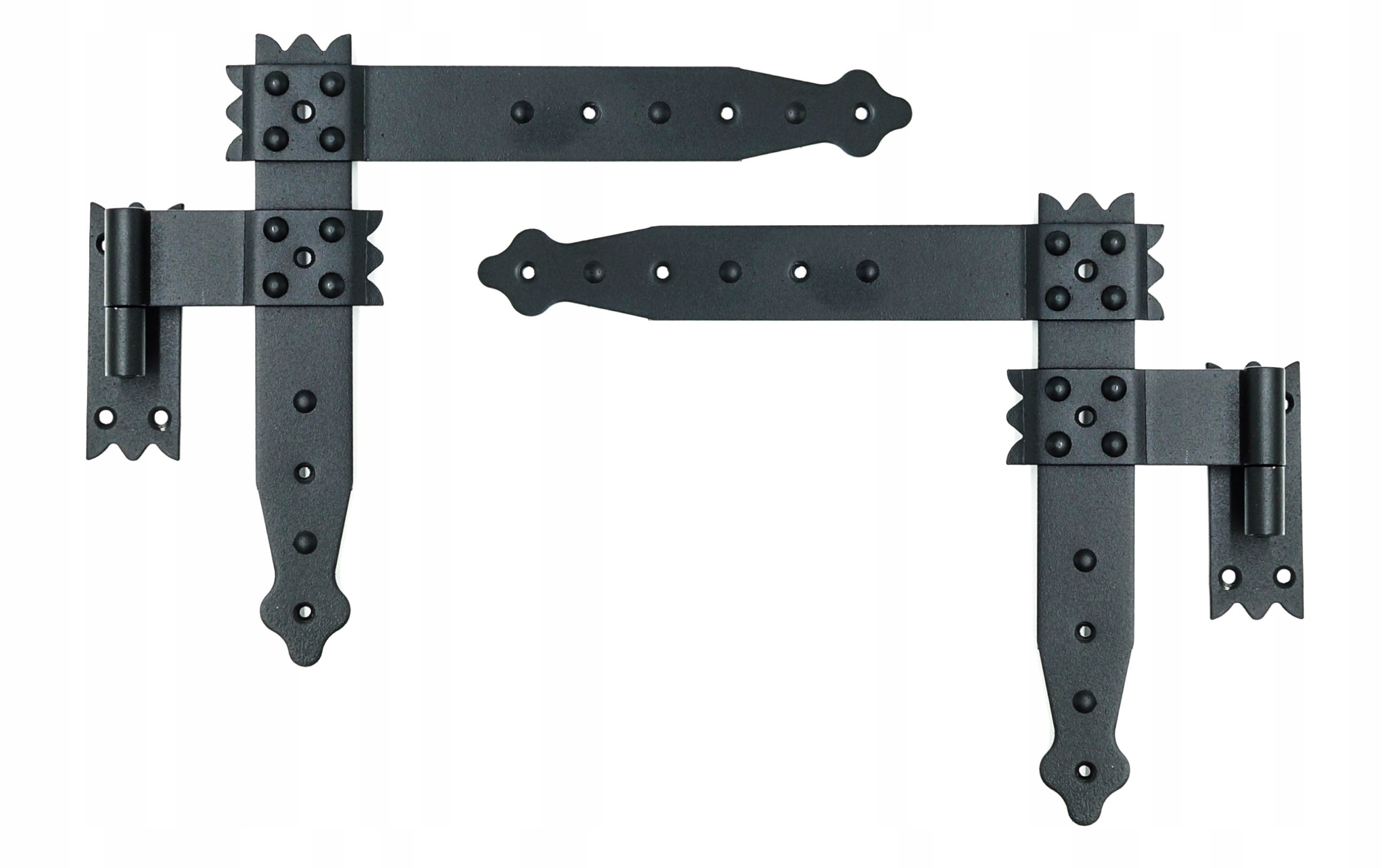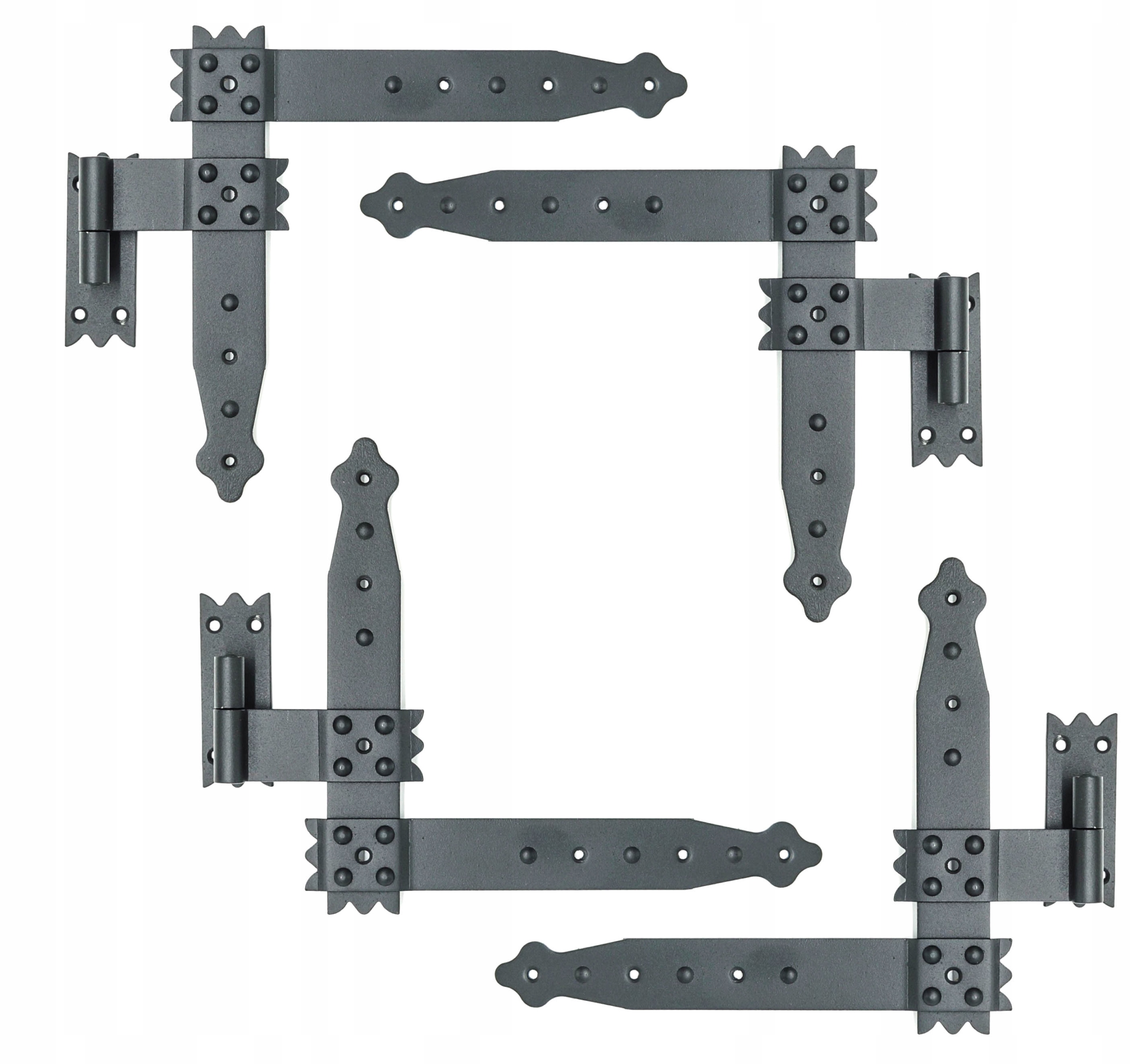 Пропозиція включає 4 кутові петлі з 4 гаками для кріплення. Ці 8 елементів створюють функціональний комплект у підгальському стилі. Петля підходить для установки в дерево, метал або цеглу. Забезпечує плавний рух віконниць при їх закриванні та відкриванні.