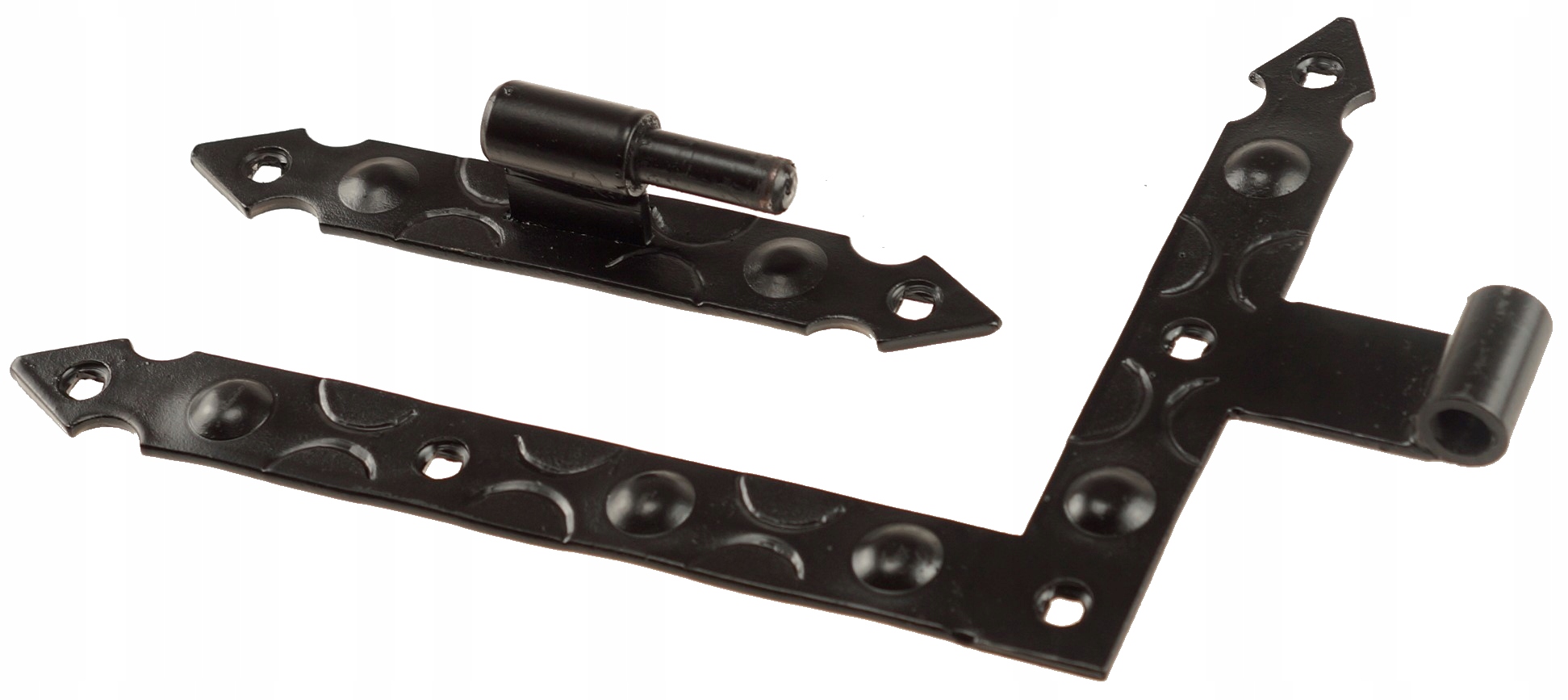 Ці 4 елементи створюють функціональний солідний гарнітур у підгальському стилі. Петля підходить для установки в дерево, метал або цеглу. Забезпечує плавний рух віконниць під час їх закривання та відкривання.