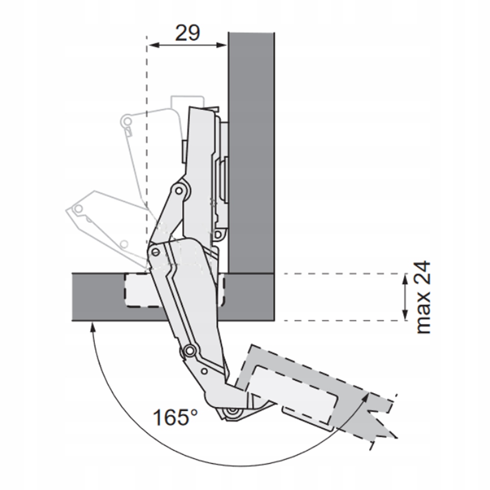 ПЕТЛЯ МЕБЛЕВА КУТОВА 165° ДЛЯ КУТОВОЇ ШАФИ