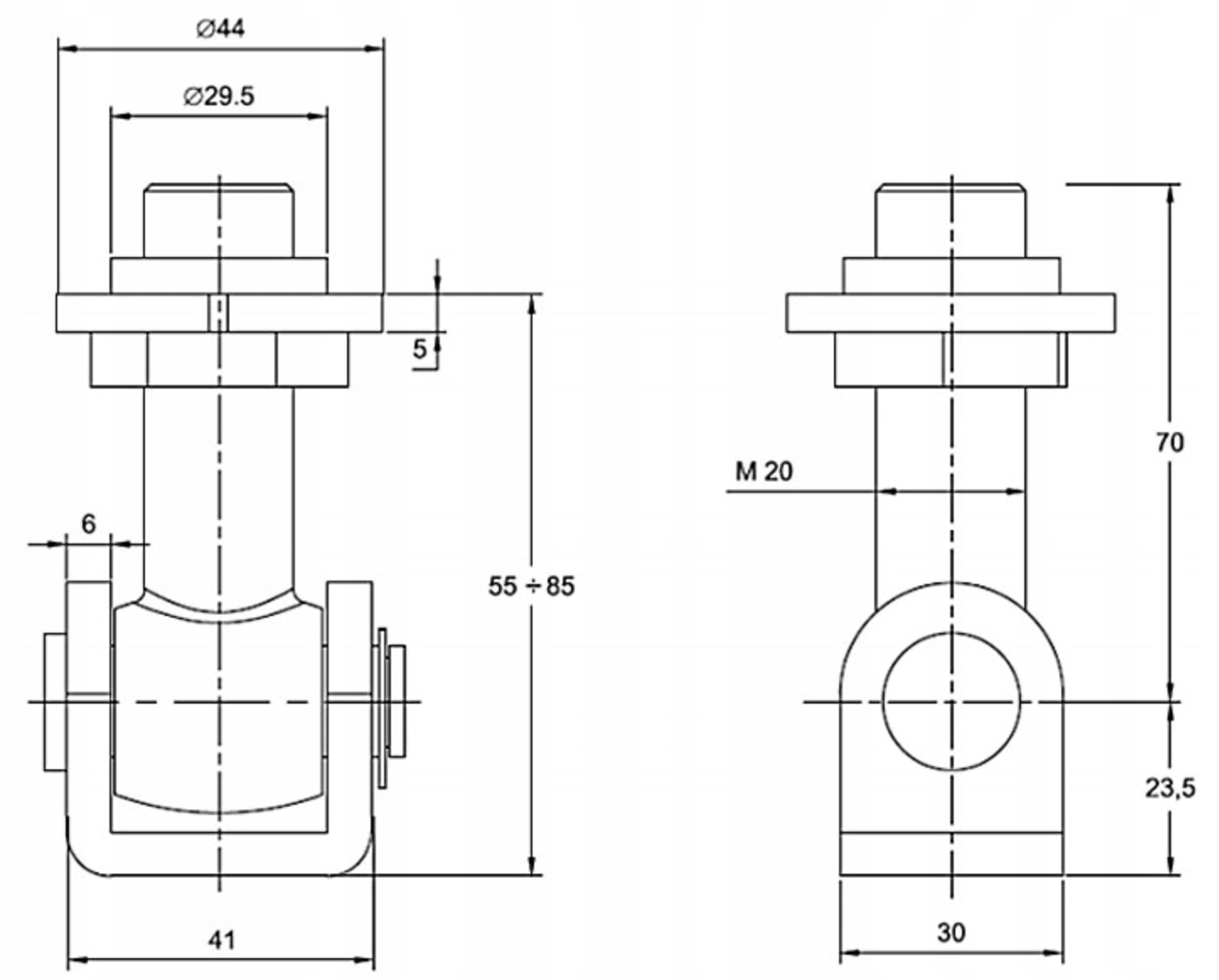 Сталева регульована петля з гвинтом M20, призначена для зварювання. Петля призначена для встановлення розпашних воріт та хвірток.