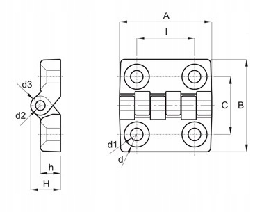 Петлі з наскрізними отворами A-64mm I-40mm d1-6.5mm, INOX