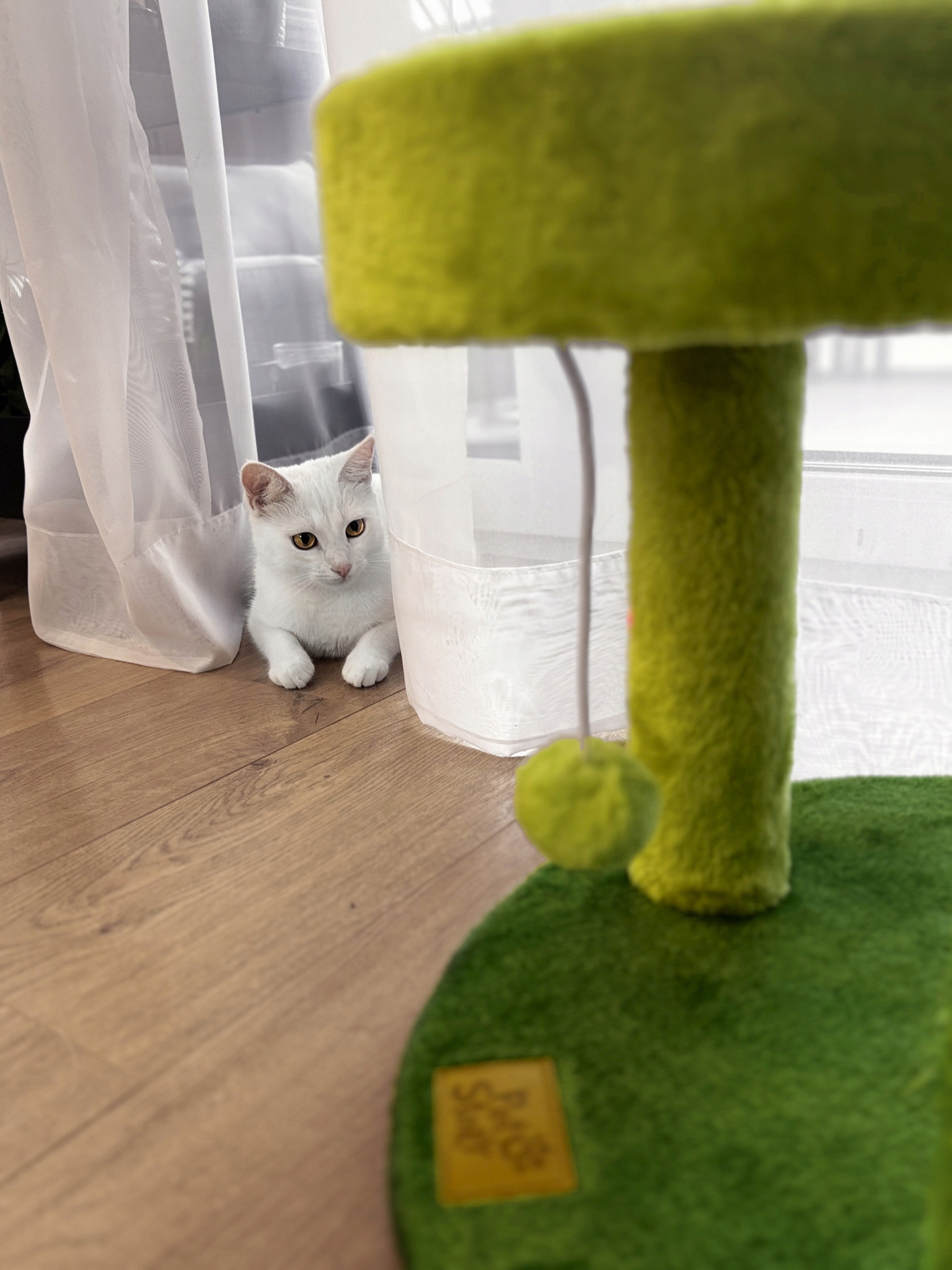 У верхній частині посту є куля на струні, яка додає додаткову привабливість, заохочуючи кішку стрибати і ловити, що стимулює його фізичні навантаження та мисливський сенс.
