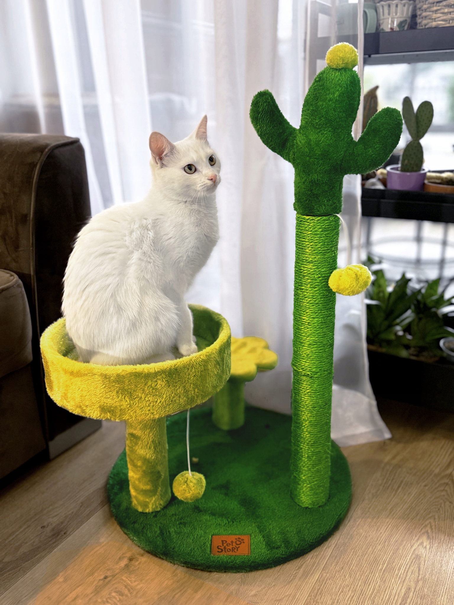 Включає сизальський пост, який ідеально підходить для заточення кігтів, і додаткову підкладену платформу, забезпечуючи місце для відпочинку та спостереження за навколишнім середовищем.
