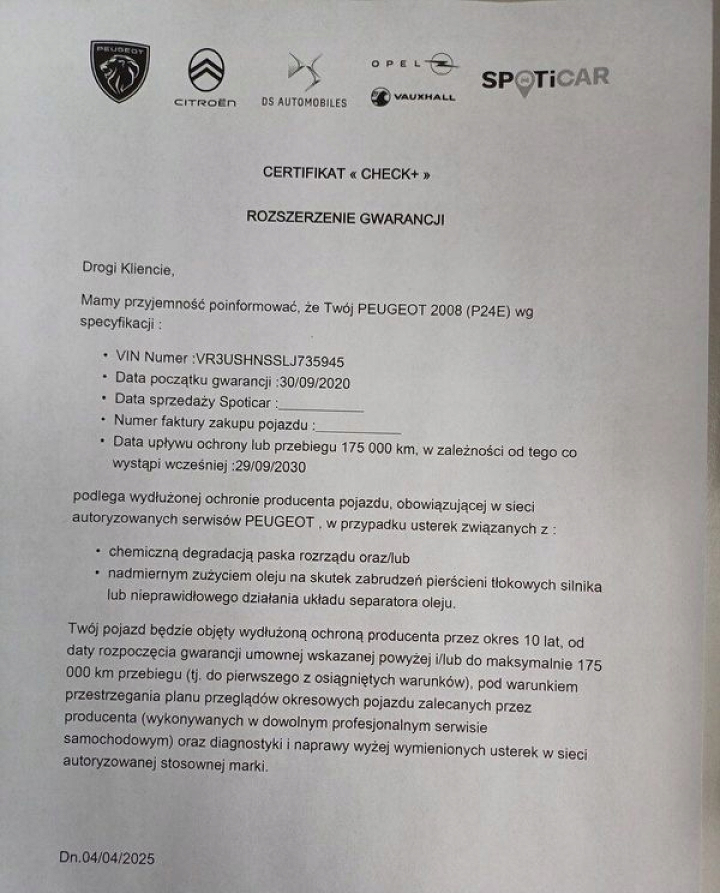 Ми пропонуємо автомобіль, який використовується з можливістю придбати гарантію 6, 12 або 24 -місяць у програмі Peugeot Spoticar