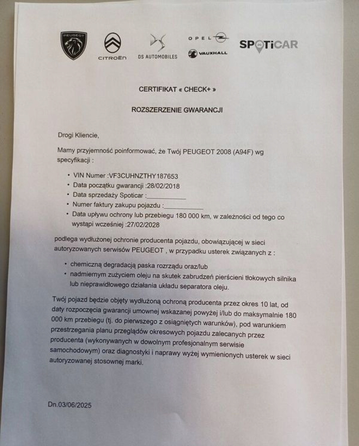 Ми пропонуємо автомобіль, який використовується з можливістю придбання гарантії 12 або 24 -місячної в програмі Peugeot Spoticar