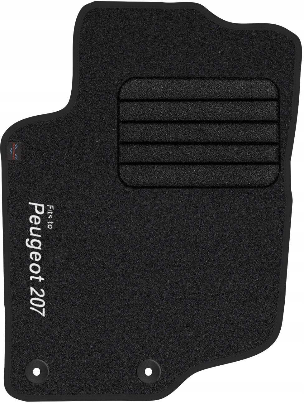 На килимі методом прямої вишивки виконано інформаційний напис "Peugeot 207". Завдяки сучасному виробництву та використанню високоякісних матеріалів і ниток, вишивка на килимках є довговічною та естетичною, що також позитивно впливає на вигляд килимка в салоні автомобіля. Зміст напису на килимку відповідає основному фото (в залежності від моделі або марки автомобіля), а над написом витонченим шрифтом розміщено напис «Підходить до», який повідомляє про призначення матів.