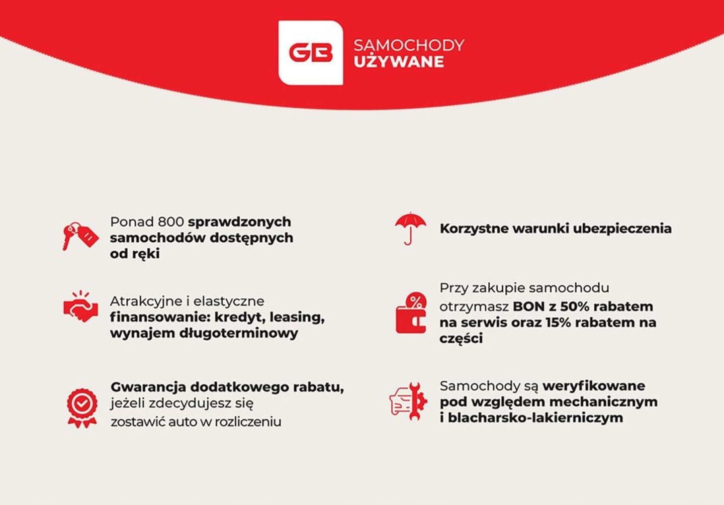 Група Bemo є однією з найбільших і найдосвідченіших дилерських груп у Польщі, яка має понад 30 локацій авторизованих салонів, а також послуги з механіки, кузовного ремонту та фарбування по всій Польщі. Виберіть пропозицію GB Used Cars і скористайтеся перевагами:
