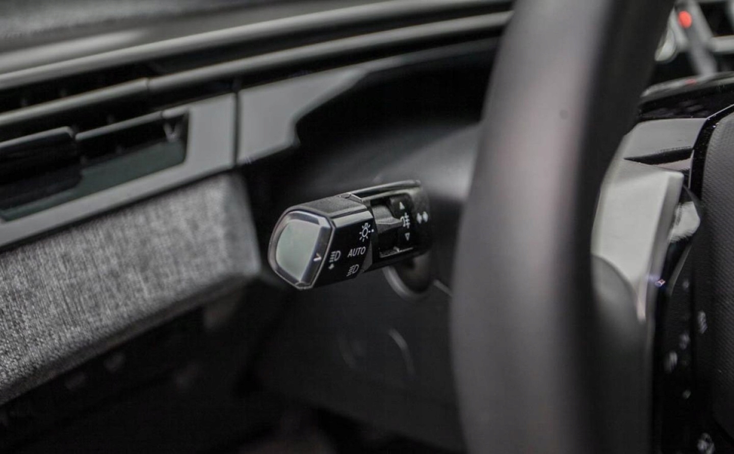 Центральна консоль, виготовлена з тканини Rimini з блискучою чорною панеллю, стен -сіра смуга