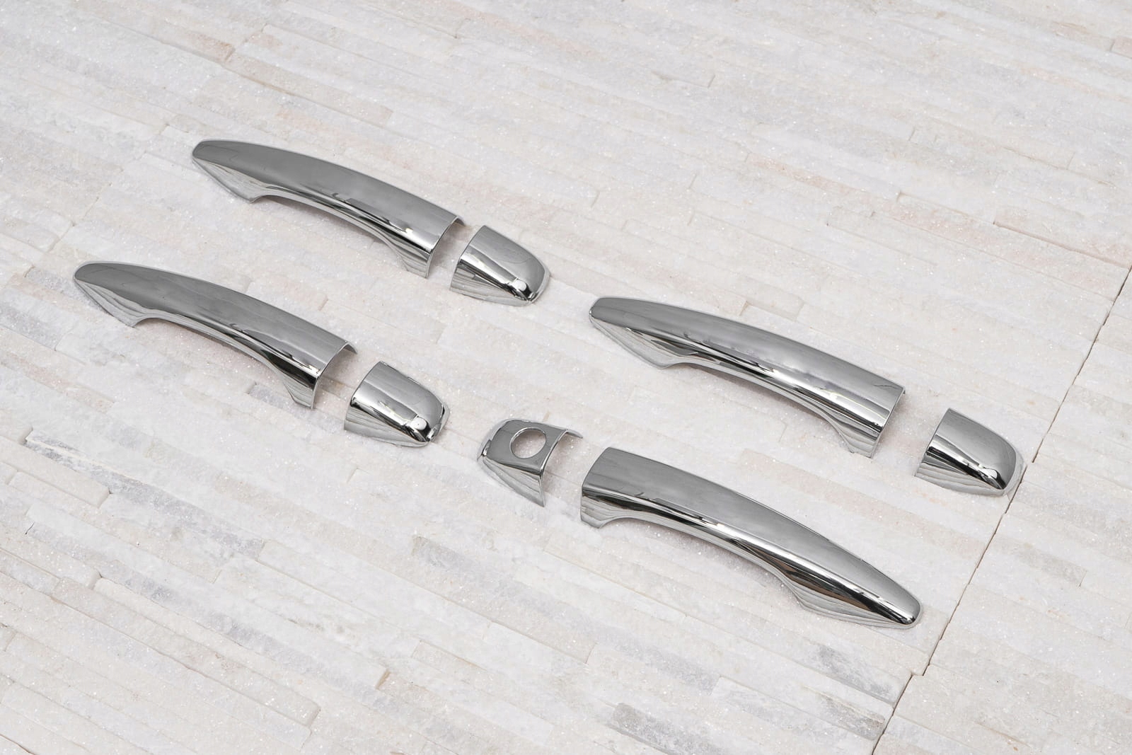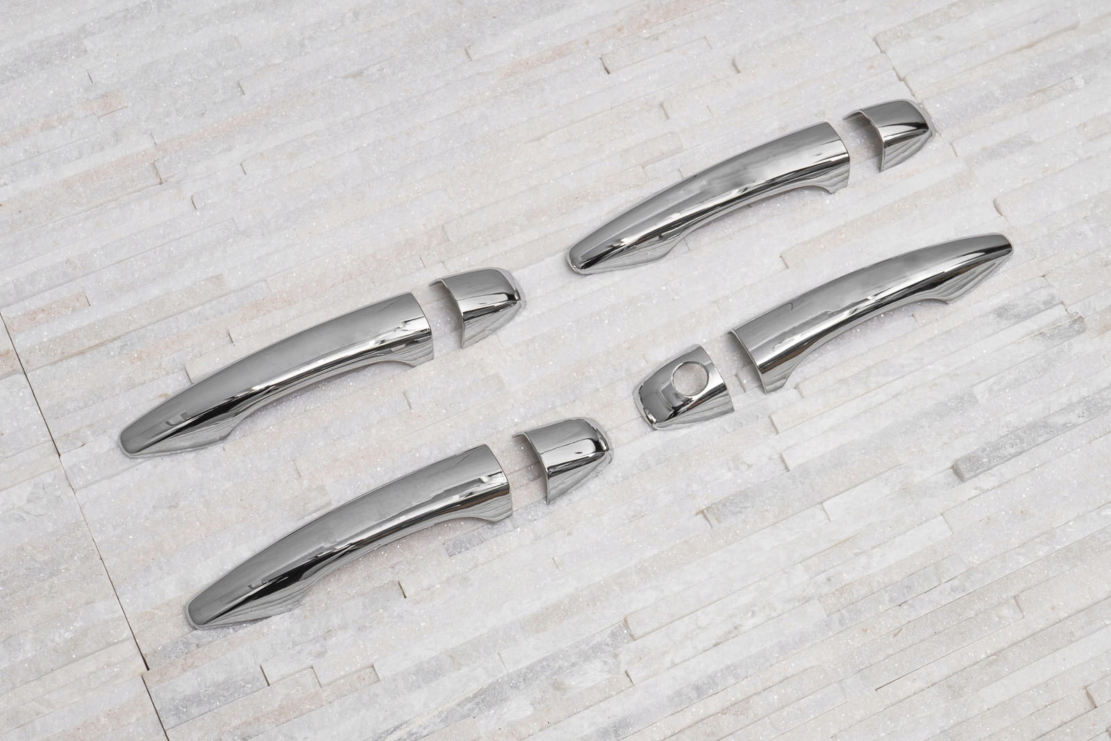 Декоративні хромовані накладки на дверні ручки є доповненням, яке доповнює стиль автомобіля ноткою спортивної елегантності. Ідеально підібрані до контурів автомобіля, вони змінюють образ дверних ручок, роблячи їх справжньою окрасою автомобіля. Виріб виготовлено з високоякісного хромованого ABS пластику.