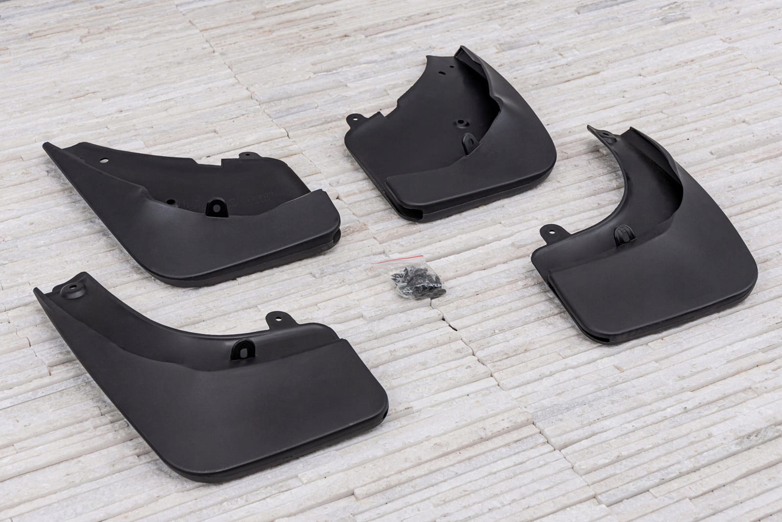 Chlaps розроблені для ідеального поєднання з лінією кузова автомобіля. Вони ефективно захищають сторони автомобіля від каменів з -під коліс і обмежують кількість бризок води, яка вдарила машини по спині. Вони виготовлені з високоякісного пластикового пластику, забезпечуючи адекватну гнучкість, довговічність та естетичний вигляд продукту.
