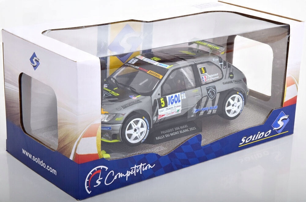 Колекційна металева модель Peugeot 306 Maxi №5 F. Delecour / J. R. Guigonnet Rallye du Mont Blanc Автомобіль Montblanc 2021 року в масштабі 1:18 від Solido. Номер за каталогом: S1808302 / SO-1808302 / 421183180
