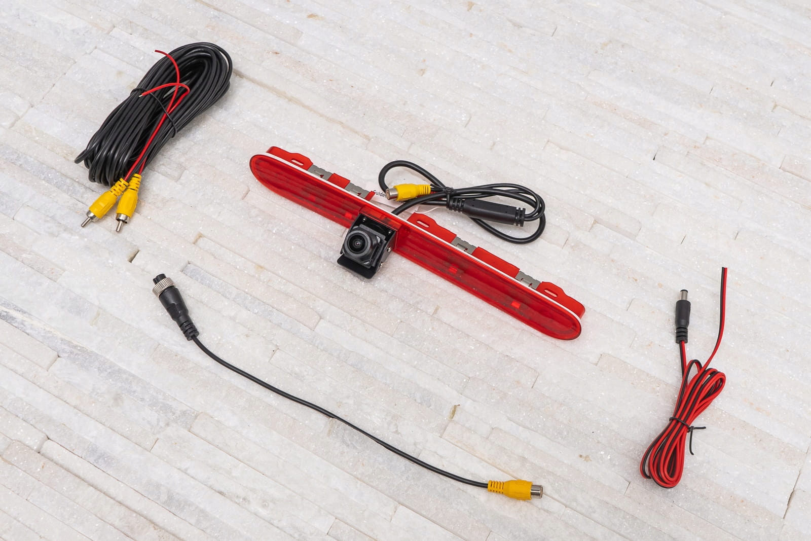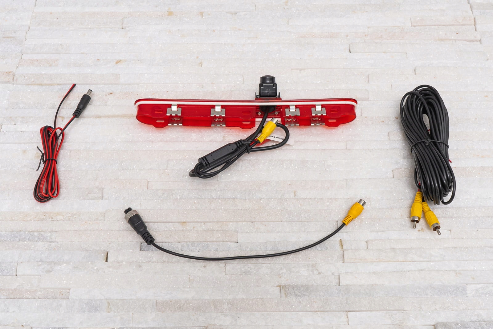 У комплект входить камера заднього виду в корпусі стоп-сигналу, кабель RCA і кабель живлення.