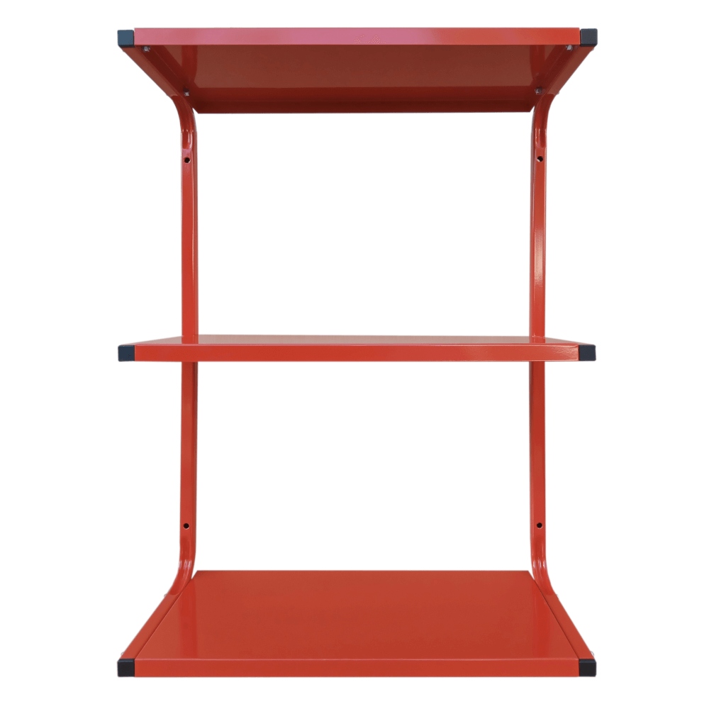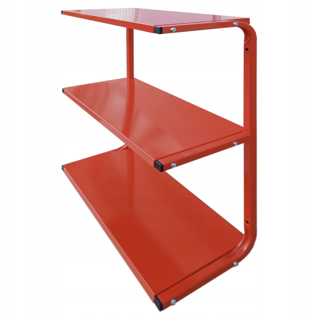 Гаражна полиця PG3M R ідеально підходить для зберігання гаражних аксесуарів. Виготовлений з листового металу, пофарбований порошковою фарбою червоного кольору. Структура лаку запобігає ковзанню предметів на полиці. Кріпиться до стіни двома гнутими кронштейнами, також пофарбованими в червоний колір. Завдяки використанню відповідних матеріалів наш продукт дуже міцний прослужить багато років і підтримуватиме порядок у вашому гаражі.