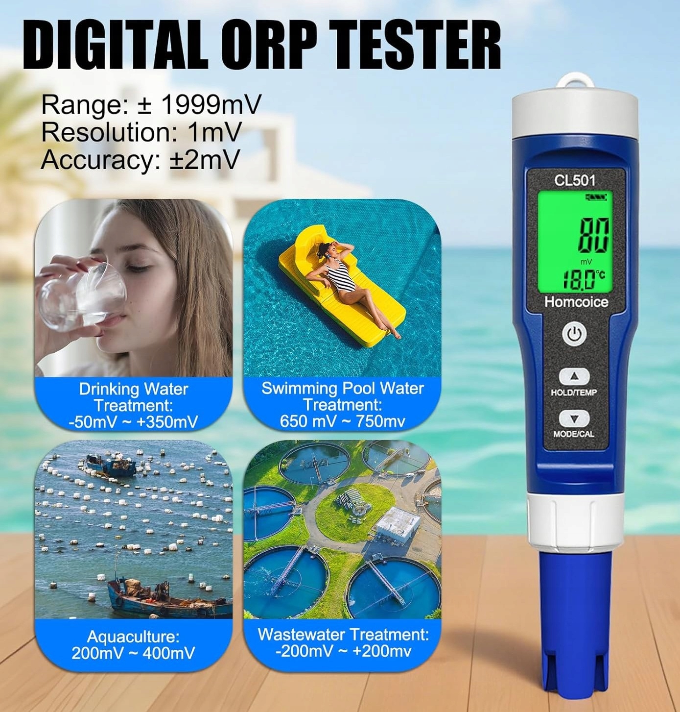 ➡️ Повний моніторинг параметрів води - окрім рН та хлору, ви також перевіряєте ОВП, вміст водню та температуру, що дає вам повну картину стану води. Цей інструмент дозволяє діяти превентивно, а не просто реагувати на проблеми. Ваші риби, рослини та члени сім’ї, що купаються, матимуть середовище, яке відповідає їхнім потребам.