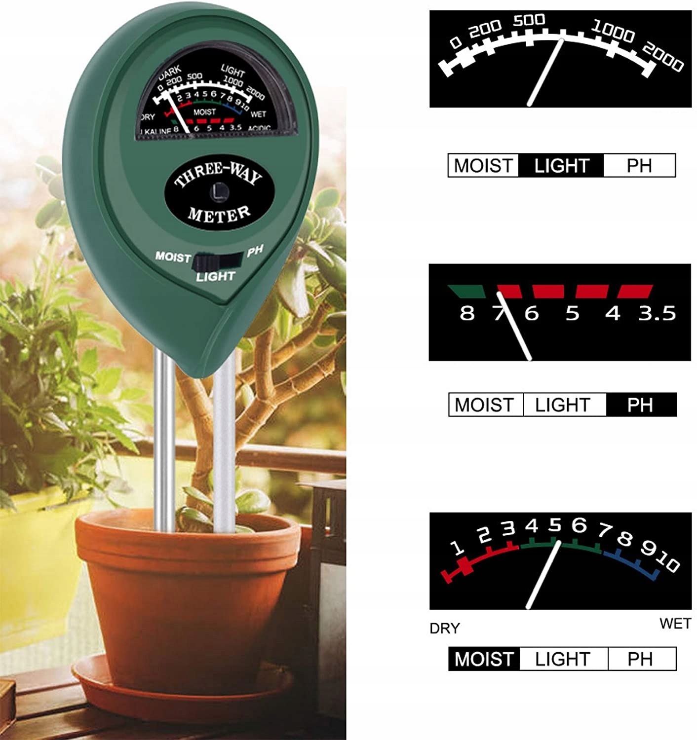 Такі параметри, як pH (кислотність), а також вологість ґрунту мають значний вплив на здоровий розвиток і гарний зовнішній вигляд культурних рослин, а також розмір і якість отриманого врожаю. Тож якщо ви хочете підняти вирощування своїх овочів, фруктів і квітів на вищий рівень, обов’язково оснастіть себе нашим пристроєм. Завдяки приладу ви швидко і легко дізнаєтеся всі перераховані вище параметри грунту як на своїй ділянці, так і в домашньому саду, оранжереї, балконі, так і в горщиках з кімнатними квітами! Наш тестер також стане в нагоді під час догляду за газонами.
