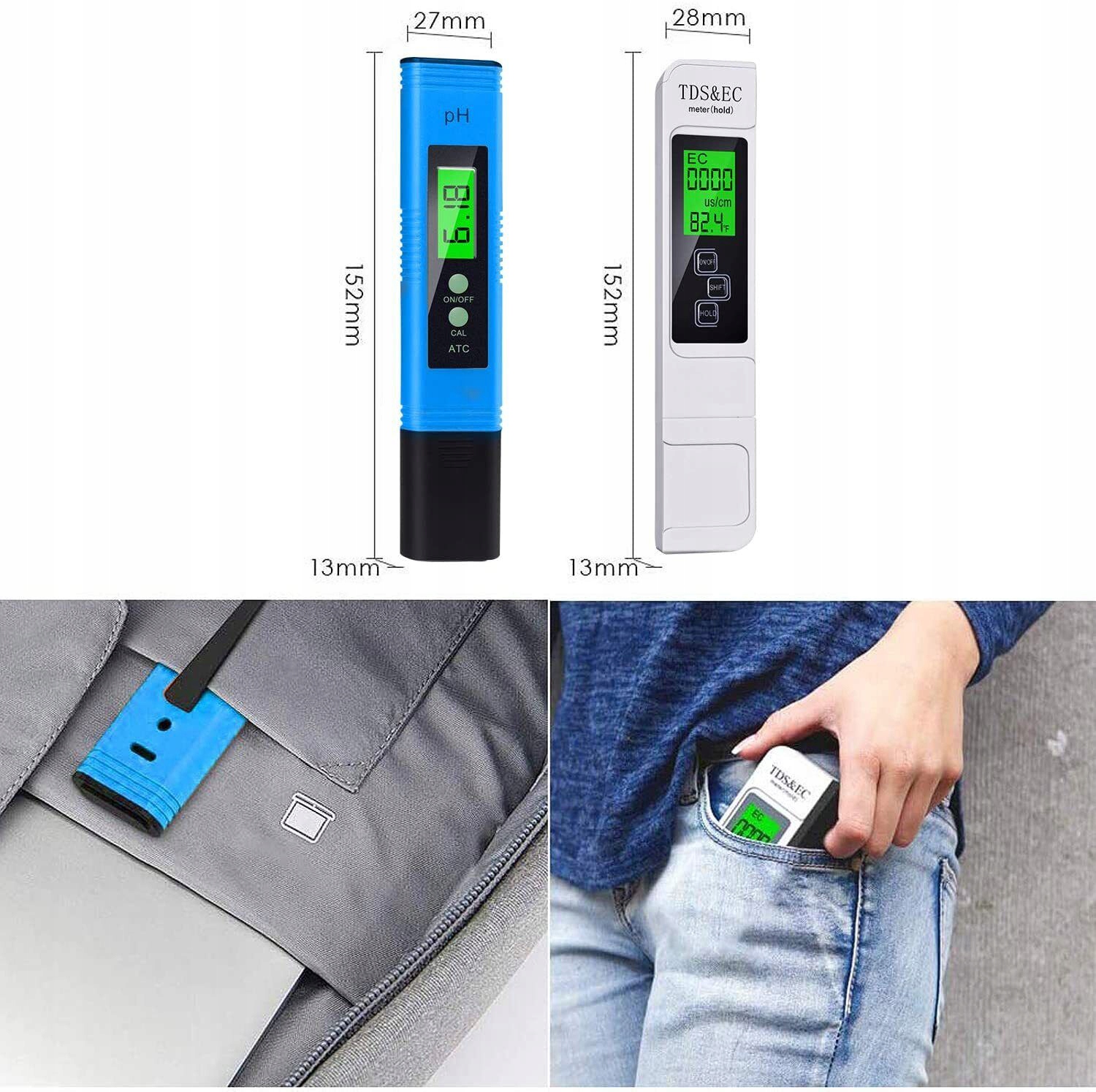 💧[Автоматичне калібрування] - обидва вимірювальні прилади можна відкалібрувати однією кнопкою. Просто піднесіть пристрій до відповідного розчину та натисніть. Через кілька секунд лічильник буде відкалібровано