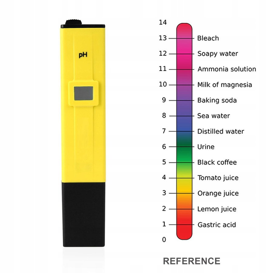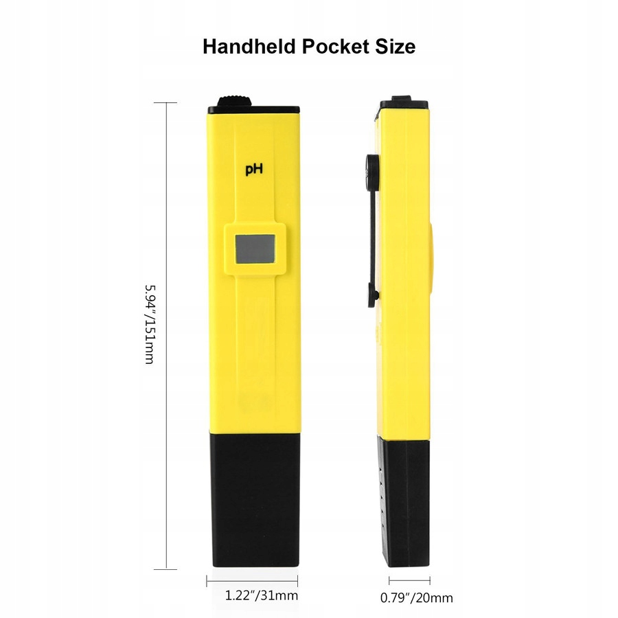 - СПЕЦИФІКАЦІЯ - розміри лічильника (довжина/ширина/висота) 15,1/2,8/2см; вага 98 г; Діапазон вимірювання pH 0,0-14,0 pH; робоча температура 0–50°C (32–122°F).
