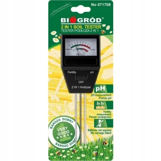 Тестер рН ґрунту від Biogród — це пристрій для одночасного вимірювання рН і родючості ґрунту, дуже корисний при вирощуванні багатьох сортів рослин і овочів.