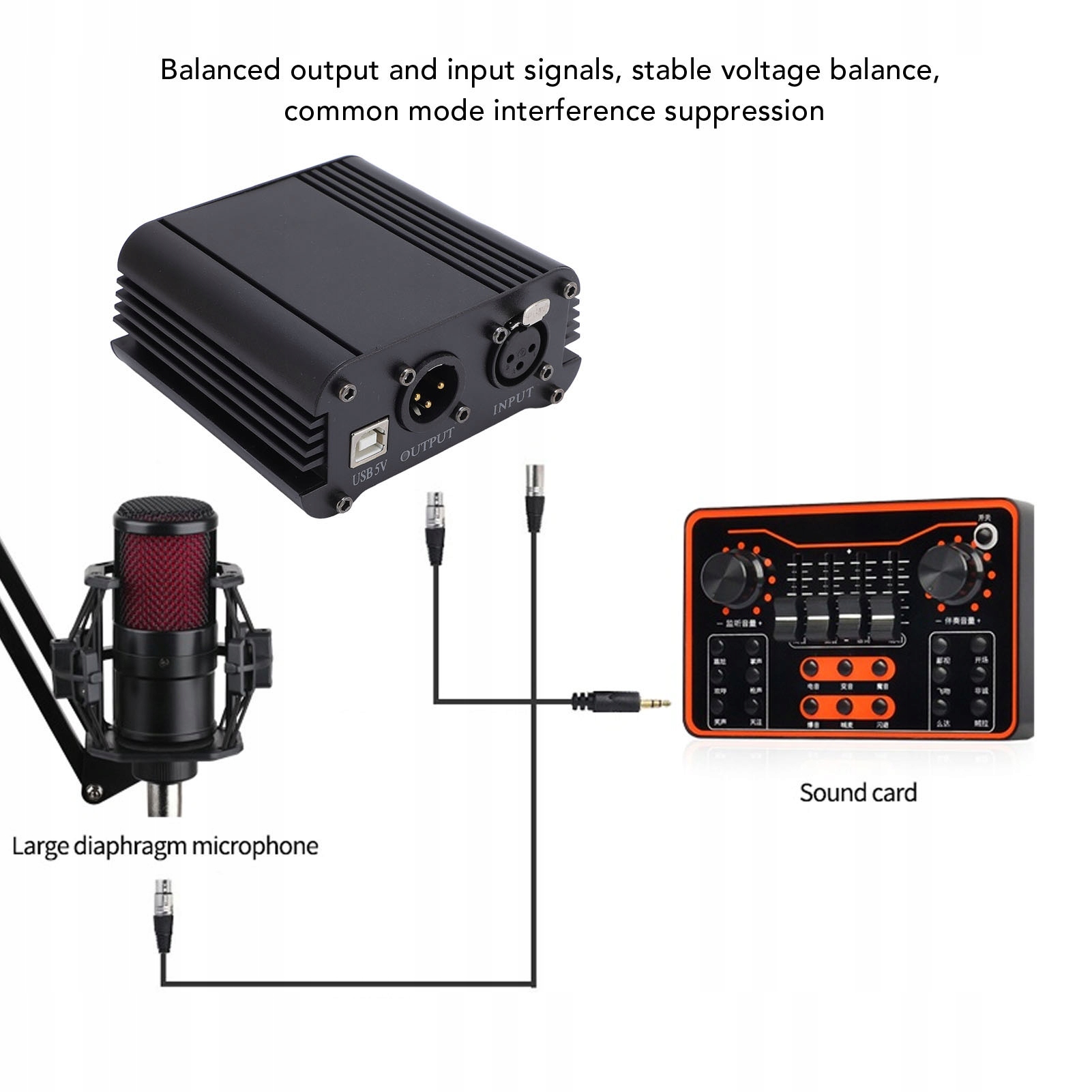 3. Сильна сумісність: сумісна з пристроями, які потребують 48 В живлення, наприклад, мікрофон, змішувачі та звукові картки, що забезпечує стабільну напругу для зменшення шуму.