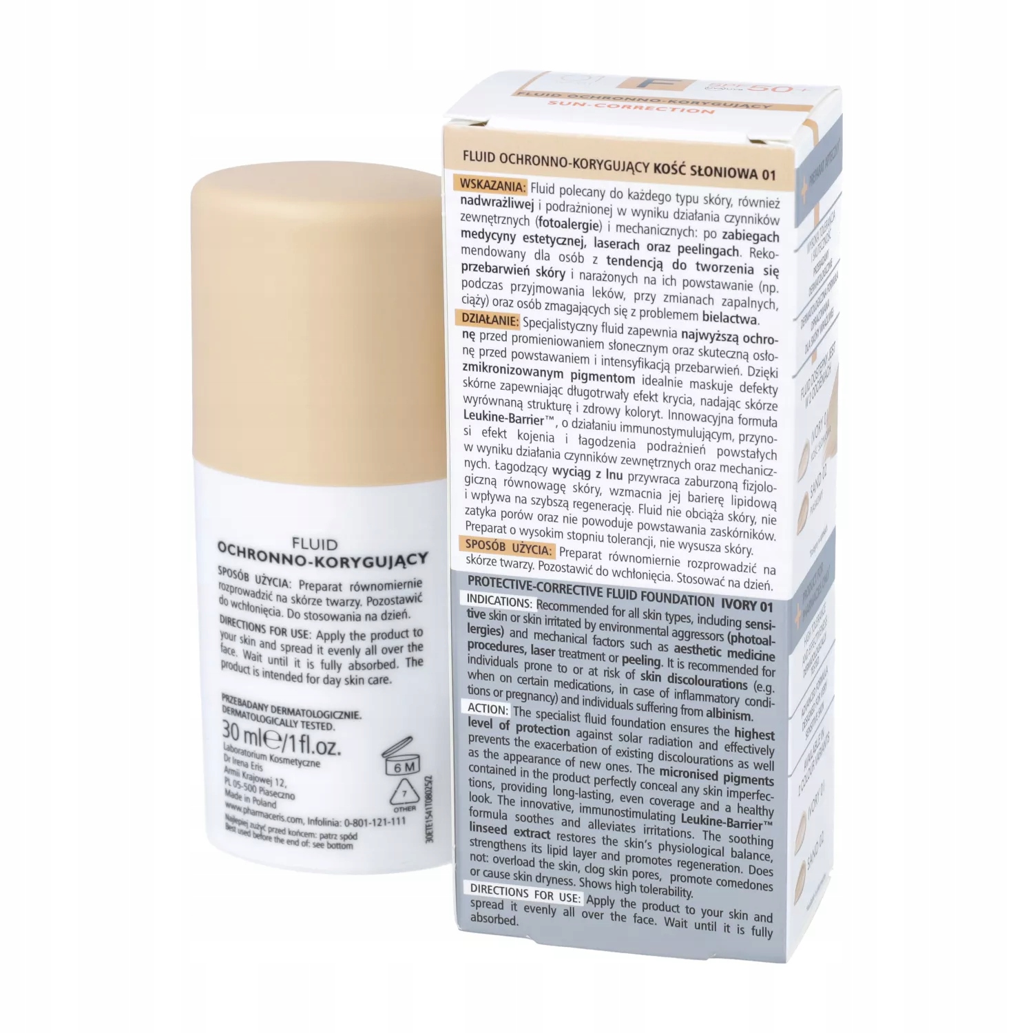 Pharmaceris F Sun-корекція захищена та правильна рідина 01 слонової кістки SPF 50+,
