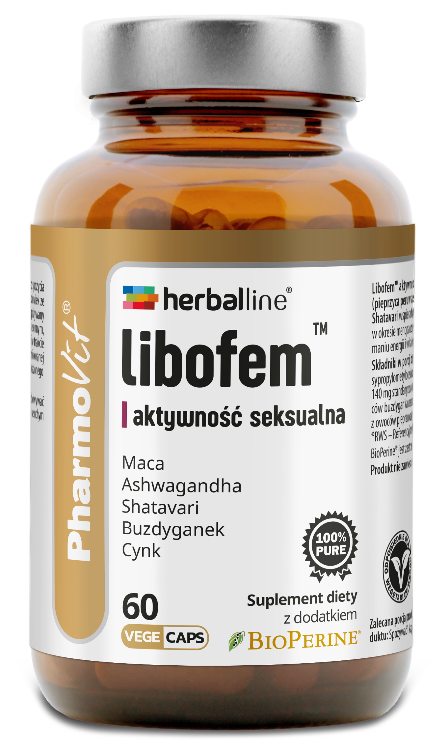 Дієтична добавка «Лібофем» містить суміш висококонцентрованих екстрактів і мінералів, укладених у рослинну капсулу Vcaps®. Композиція збагачена екстрактом чорного перцю BioPerine®. Libofem for LIBIDO Ashwagandha and Maca Pharmovit