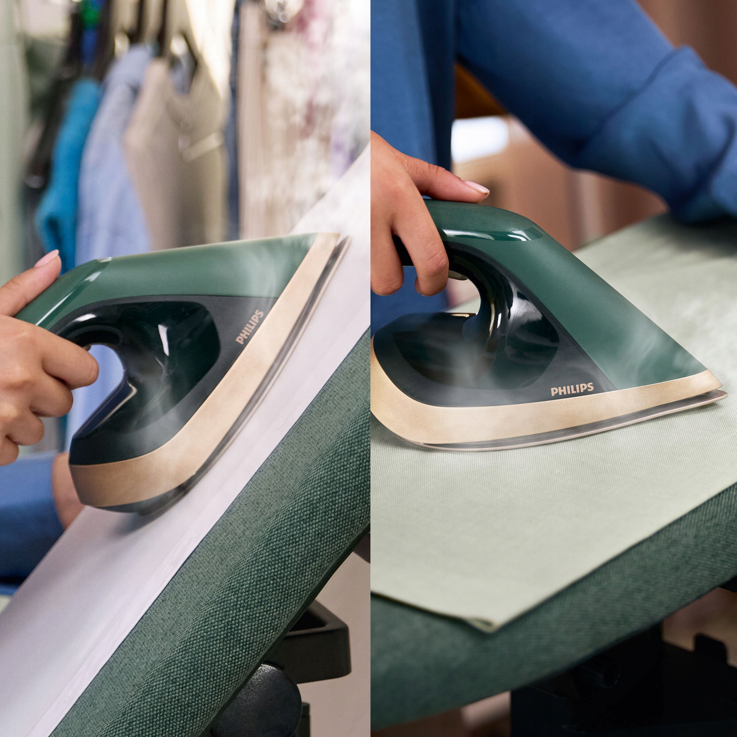 Ергономічне залізо заліза+ робить прасування надзвичайно простим. Зручне видалення складок завдяки залізі+ ергономічній голові та ваги вдвічі менші, ніж звичайне залізо.