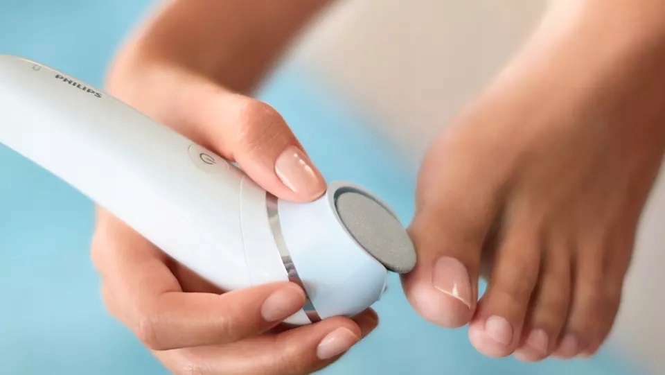 Всього за кілька хвилин він ефективно видаляє мертву шкіру та будь-які мозолі з ваших ніг. Працює у вологому та сухому стані. Він досягає навіть важкодоступних місць завдяки вузькій кромці та обертовій технології.