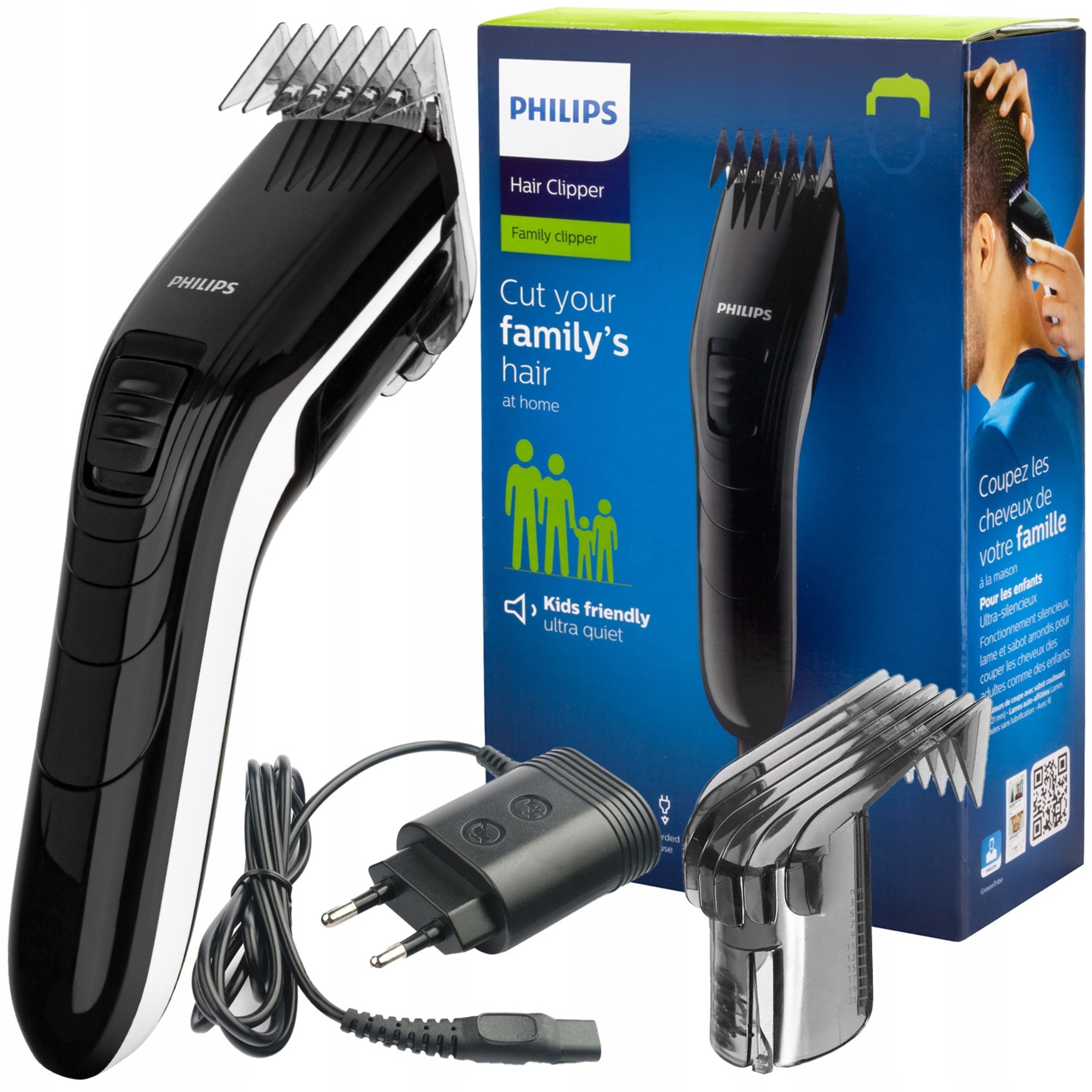 Ще ніколи не було так просто підстригти всіх членів сім’ї. Двигун цієї легкої ергономічної машинки для стрижки волосся потужний, але дуже тихий. Делікатні леза та наконечники гребінця дозволяють ефективно стригти волосся дітям і дорослим