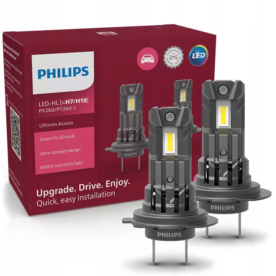 Набір із двох світлодіодних ламп останньої серії Ultinon Access від бренду Philips, які є ідеальною заміною для ламп H7 та H18: