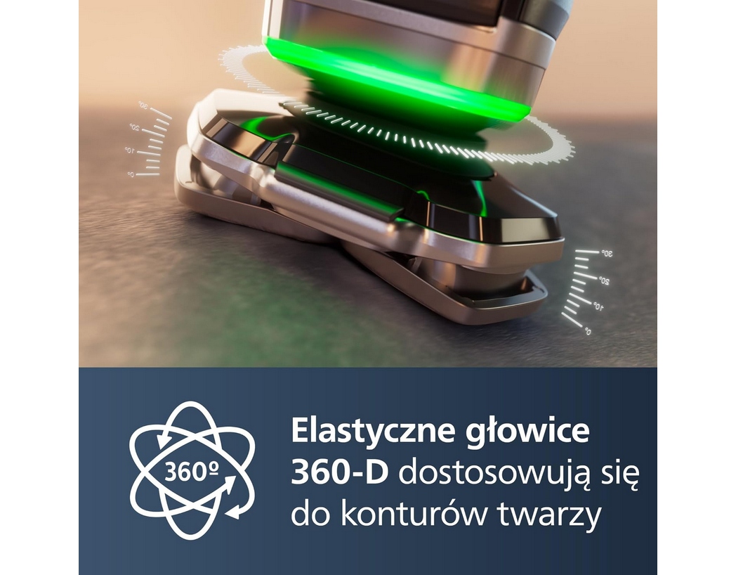 Голови можуть адаптуватися до форми обличчя, повернувши 360 ° відповідно до контуру обличчя , що дозволяє точне та зручне гоління.