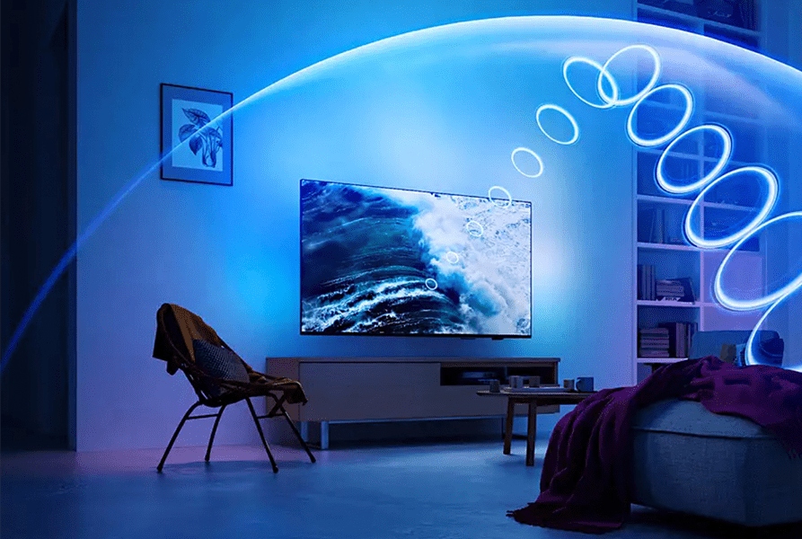 Телевізор Philips оснащений звуковою системою Dolby Atmos , що забезпечує незвичайне враження від аудіо. Ця технологія ставить звуки навколо глядача, створюючи тривимірну звукову сцену. Завдяки цьому, користувач може відчувати себе так, ніби він був у центрі подій, незалежно від того, переглядає бойовик чи розслабляючу програму природи.