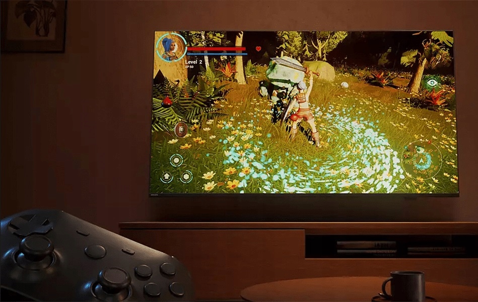 Лікарські телевізори пропонує vrr (змінна швидкість оновлення) та низька затримка введення . Роз'єм HDMI VRR автоматично регулює швидкість оновлення на консоль, забезпечуючи плавну графіку без ефекту відриву зображення. Режим низької затримки активується автоматично після підключення консолі, яка гарантує швидкий та чуйний геймплей.