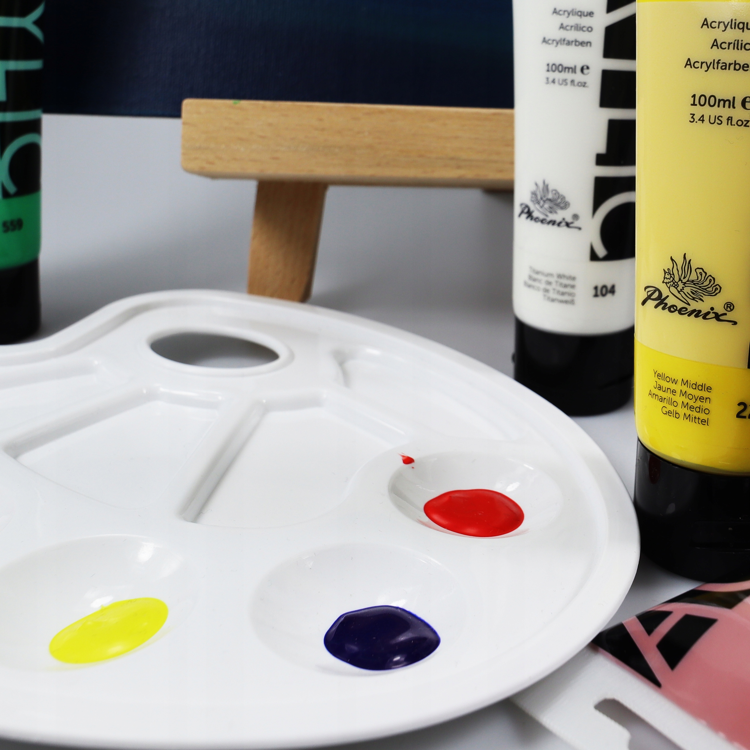 Так, акрилові фарби Phoenix можна розбавляти водою або акриловими середовищами, щоб змінити їхню консистенцію, прозорість або фінішні властивості.