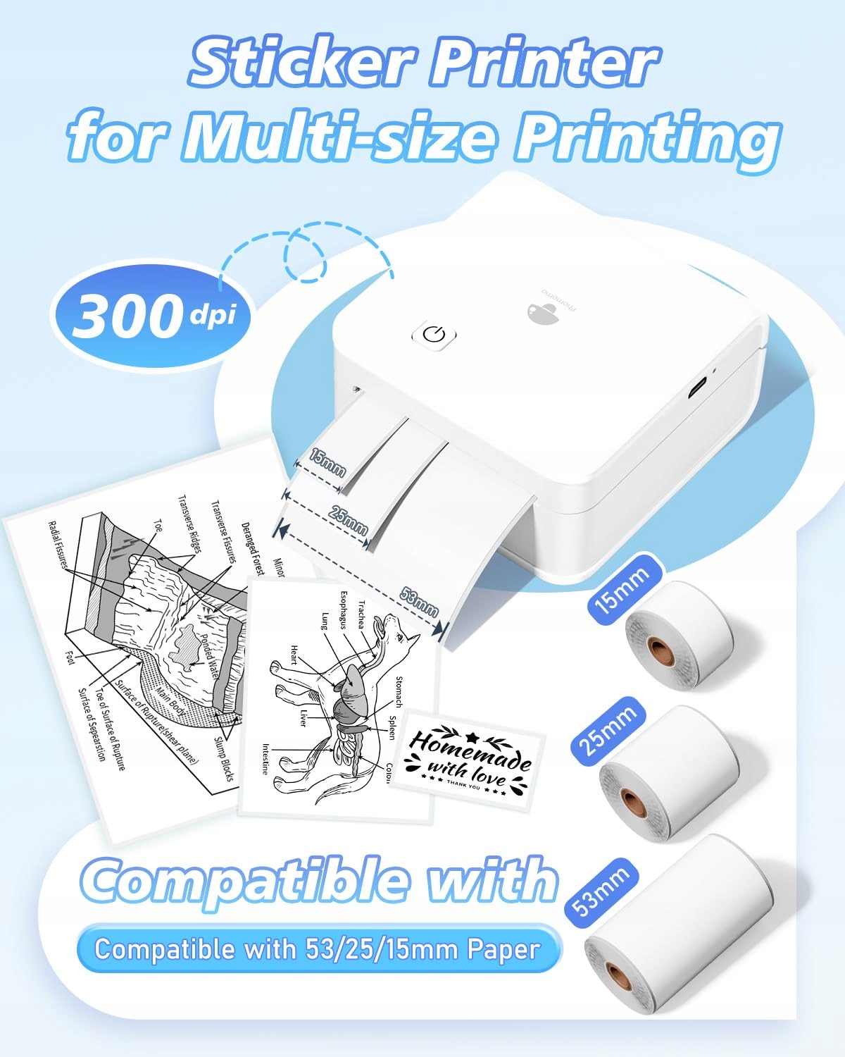 - Портативний принтер: Міні -принтер (8,5 х 8,5 х 4,6 см) має вбудований акумулятор 1000 мАг, і ви можете взяти його куди завгодно! Елегантний дизайн, ідеальний подарунок для друзів та родини