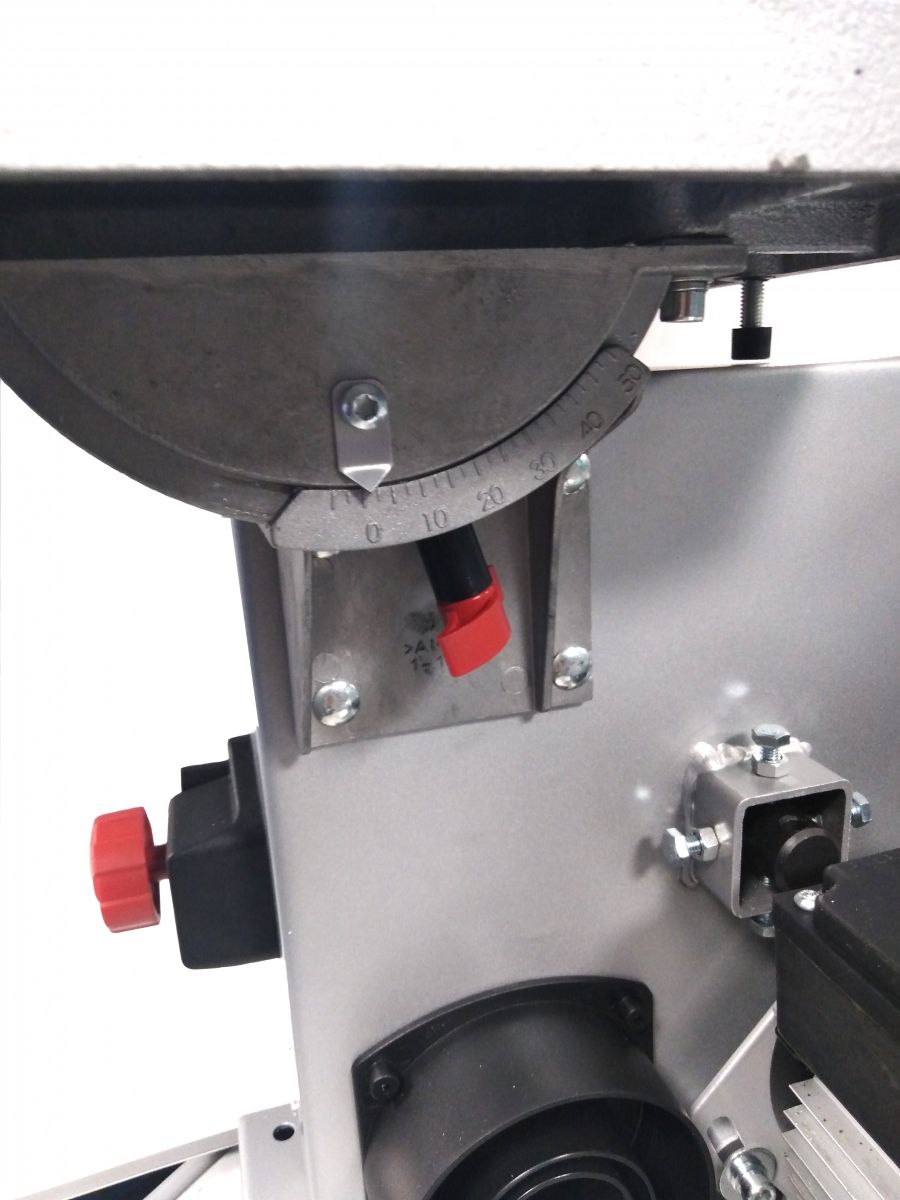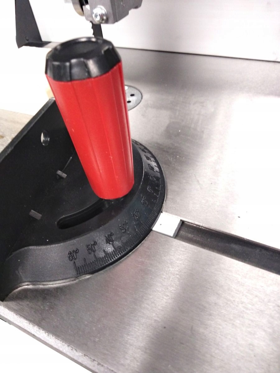 - A sloped gray cast iron saw for making angular cuts