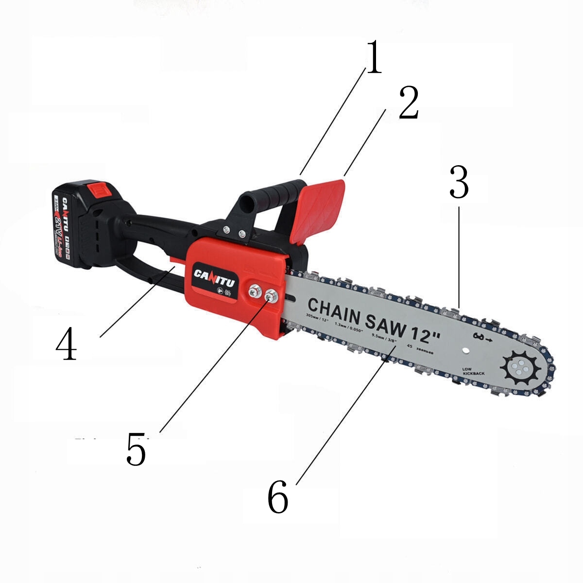 Бензопила з акумуляторним живленням постачається з 12-дюймовою бензопилою. Ланцюг гострий, гладкий і легко затягується. Він має низьку віддачу і може швидко та плавно прорізати товсті гілки, деревини, гілки та дрова.