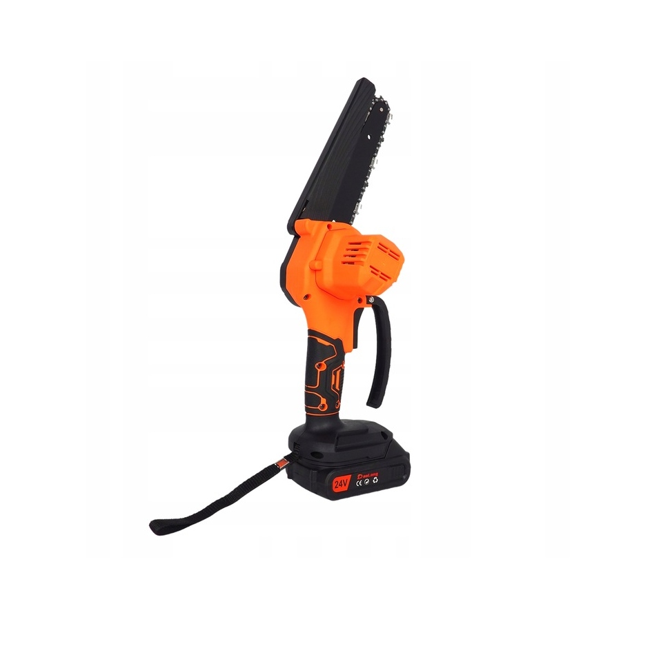 Ця міні-бензопила оснащена двигуном із матової міді, що забезпечує плавне різання та мінімальний знос. Літієва батарея 24 В 1,5 А·год є ідеальним джерелом енергії та ланцюг з посиленою структуроюзабезпечує надійність. Напрямна з високоякісної сталі гарантує точність і довговічність.
