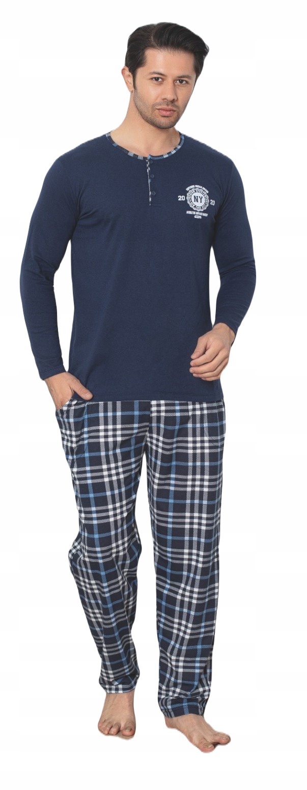 PIŻAMA męska DŁUGI RĘKAW SPORTOWA GUZIKI