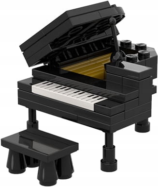 Піаніно – виготовлена на замовлення модель, яка на 100% складається з нових оригінальних кубиків LEGO. Піаніно є оригінальним проектом Extra Extra Bricks. Конструкція включає чорне піаніно з сидінням, яке видно на фото. Модель упакована в мішечок. Потрібна самостійна збірка згідно інструкції, що додається. Приблизні розміри після складання: 8 см x 5,5 см x 5,5 см.