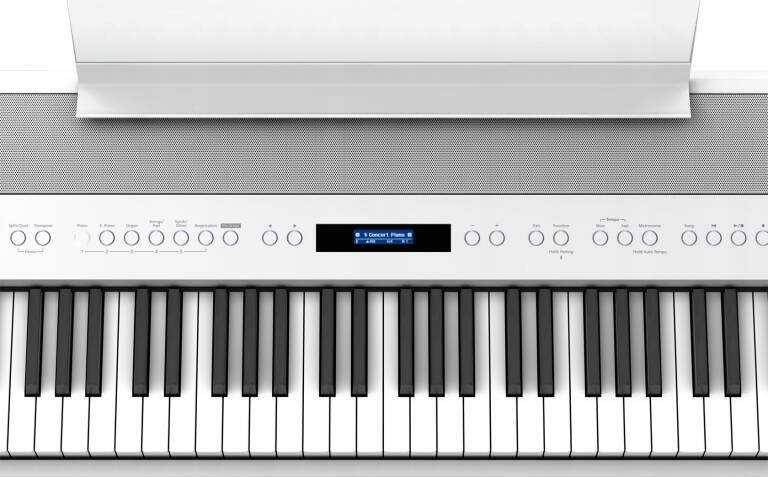 Клавіатура PHA-50 у FP-90X, яку також можна знайти в першокласних піаніно Roland, є інноваційний гібрид, який забезпечує найкраще з обох світів, поєднуючи відчуття та текстуру клавіш акустичного піаніно з неперевершеною довговічністю. Теплий дотик дерев’яних сторін стане миттєво знайомим досвідченим геймерам, тоді як композитна центральна рамка простягається від передньої до задньої частини клавіш для стабільного та впевненого дотику. Спеціально розроблений ударний механізм забезпечує автентичну реакцію, а колір слонової кістки та чорного дерева відтворюється в найдрібніших деталях. Це як грати на традиційному акустичному піаніно без регулярного обслуговування.