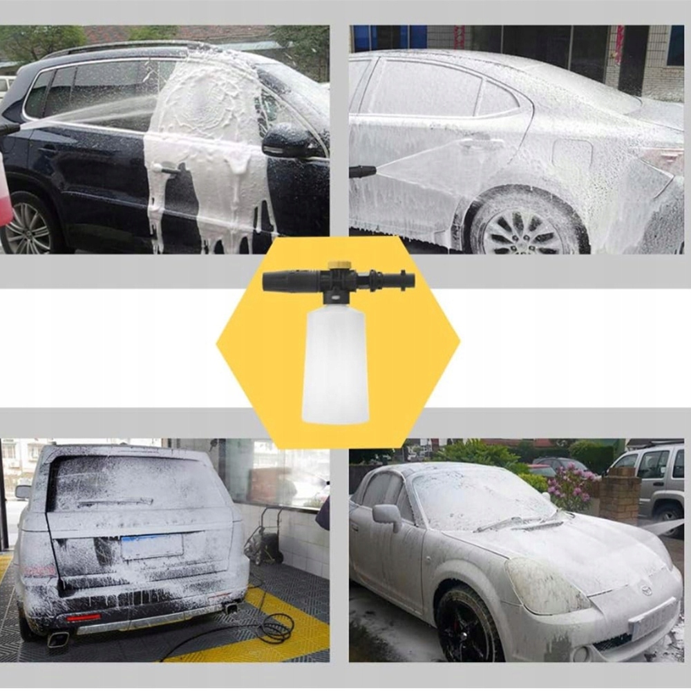 Лансі для сніжної піни Karcher становить 700 мл. Виготовлений з суцільної пластикової та латунної арматури, це набагато легше, що забезпечує гнучку та зручну роботу. Сніжна пінопласт утворює товсту піну, що покриває, і прилипає до транспортних засобів.