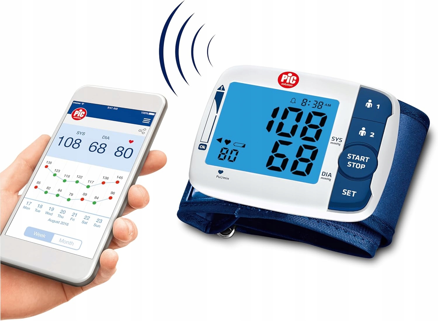 PIC Рішення мобільного мобільного тиску на зап'ясті, який можна синхронізувати за допомогою смартфона . Компактний і легко переносити та зручно взяти з собою, працювати або у відпустці - це інновація, яка дозволяє не тільки вимірювати артеріальний тиск, але й контролювати безпосередньо по телефону. Цифрова та автоматична характеризується компактним розміром та ергономічним дизайном, характерними для DLS (мови дизайну). Швидка технологія технологій вимірює ваші дані, як тільки вони надуваються, завдяки якому результат простий і швидкий. Великий дисплей з підсвічуванням дозволяє чітке та негайно зчитувати також на вулиці при слабкому освітленні. Він фіксує порушення серцевих скорочень, а графічний дисплей інформує про артеріальний тиск. Мобільне швидке зап'ястя - це монітор PIC, який синхронізується зі смартфонами, на яких встановлюється додаток Health Station. Завдяки цьому ви можете заощадити значення артеріального тиску, відображати дані в будь -який час та отримати щотижневі або середні результати.