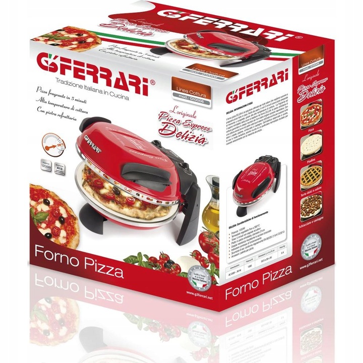 g3ferrari g10006 delizia нагріває до максимальної температури 400 ° С, а вогнепальний камінь поглинає вологу з тіста та інгредієнтів протягом перших секунд випічки. Температура духовки та кам'яне дно - це хитрощі, що використовуються в найкращих піцерії. Ось чому випічка самого тіста триває лише 5 хвилин, як італійська піцу.