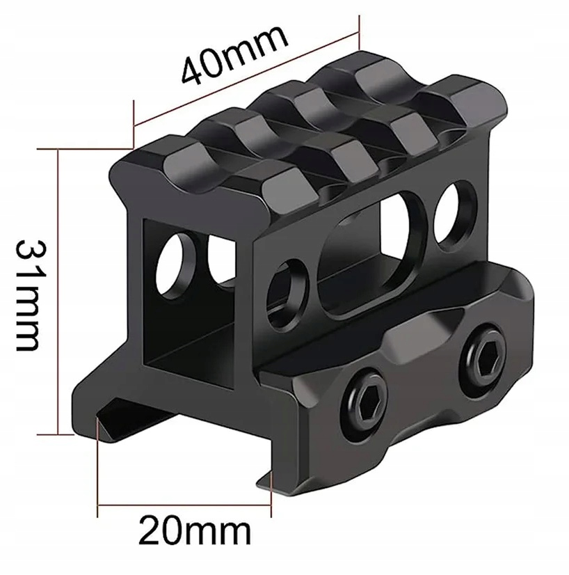 тверді та точно зроблені підйомні збори (кріплення стояки) для зброї з Picatinny або Weaver 20 мм. Ідеально підходить для коліматорів, оптичних пам’яток, ліхтариків та інших тактичних аксесуарів. Завдяки висоті 3 см (1 "), він піднімає оптику над лінією мух, забезпечуючи кращу видимість та комфорт націлювання.