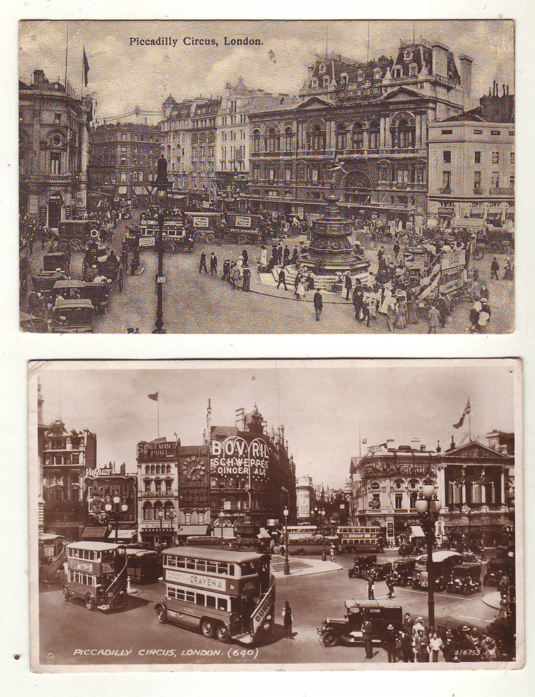 Piccadilly Circus, London - dwie pocztówki