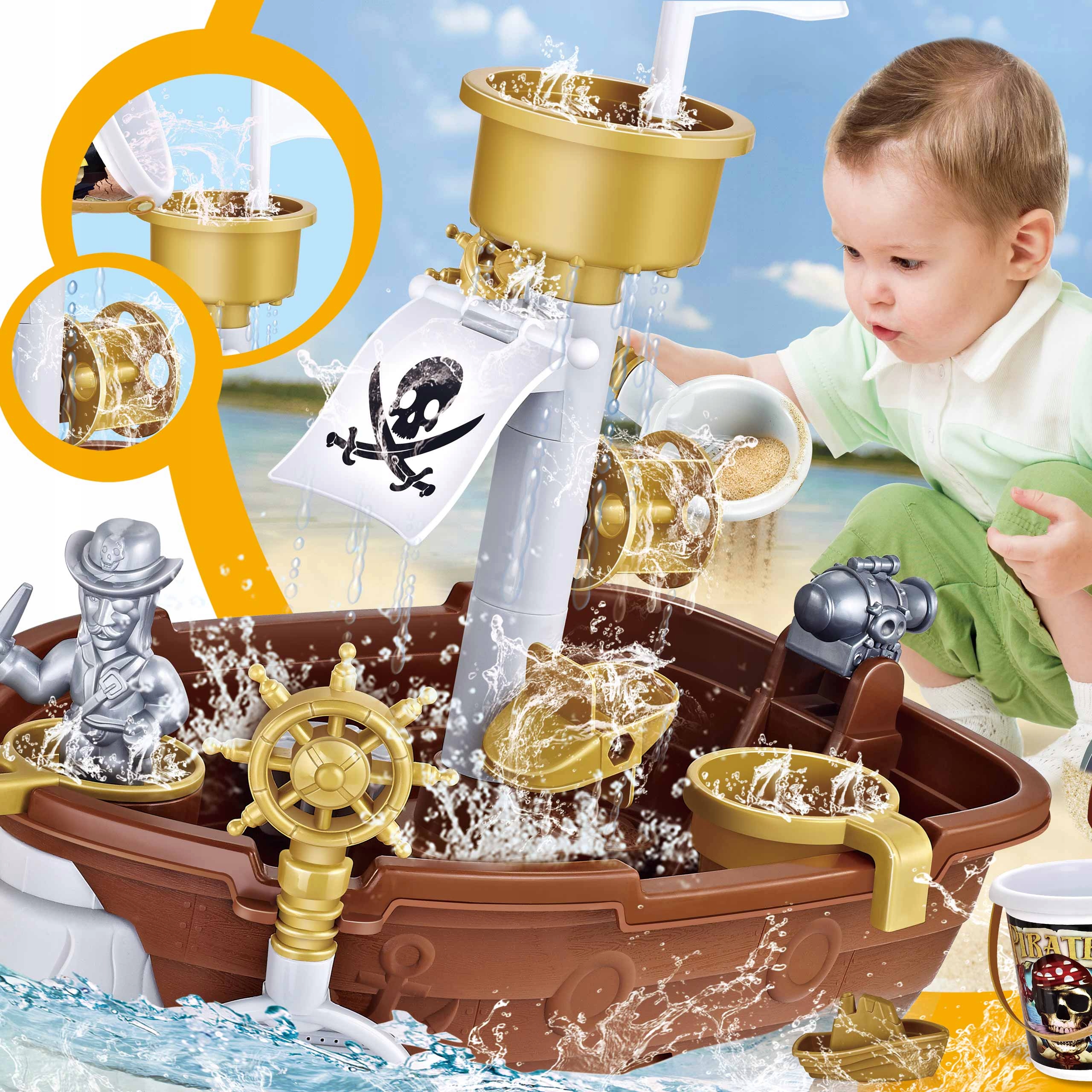 - Таблиця води з пісочниці у формі піратського човна